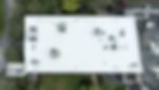 A narrower aerial shot of the Ministry Center showing the damage of the current roof.